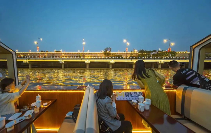 逛完创意市集,再抵达新开通的水木秦淮码头,乘坐“塞纳号”现代游艇,欣赏两岸风光,仿佛在感受一场自然与人工相辉映、古典与现代相交融的唯美视听盛宴!