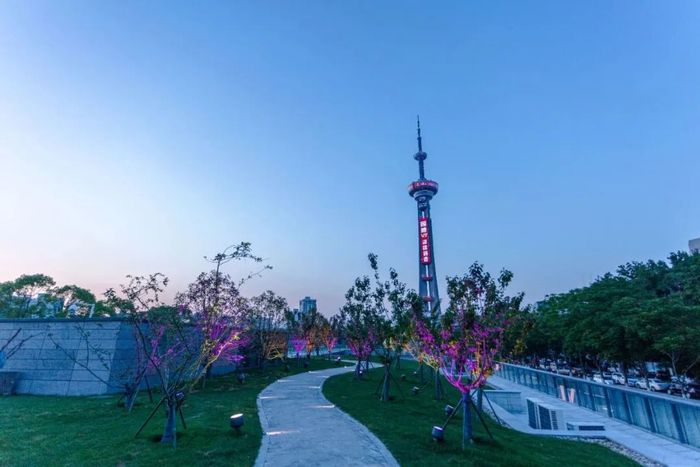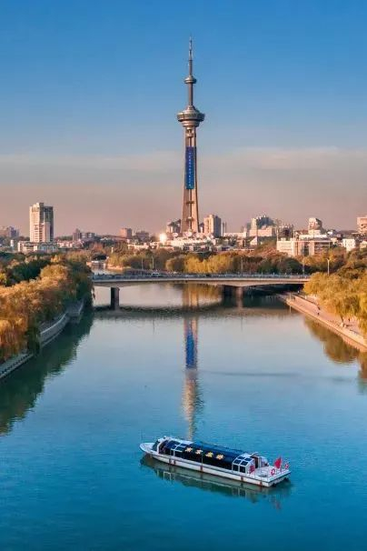 尤其在夜晚,秦淮河轻柔的微风从河畔吹来,和远处高耸的江苏广播电视塔相映成趣。