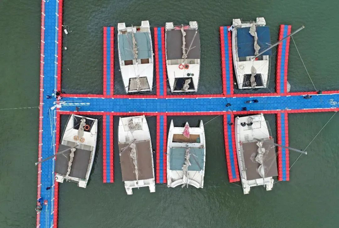 走上150米长的海上彩色景观浮桥,是无障碍拥抱海风的最佳方式,更可以加入旁边停靠的一艘艘游艇,跟随渔民出海,体验最生动的渔家生活。