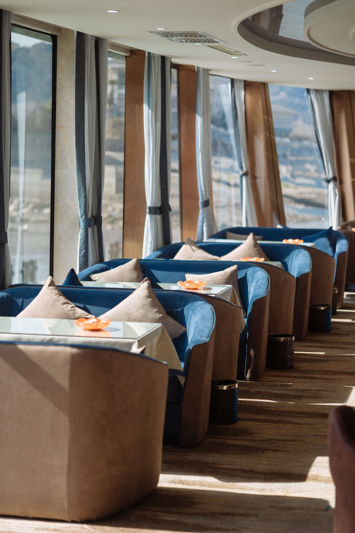坐过“长江传奇”游轮白日航线的朋友想必深有体会,这座豪华游轮的设计兼具人文历史、餐饮、娱乐等复合元素,你能全方位综合地沉浸其中;全通透地式玻璃+全新风中央空调的布置,又能满足观览与乘坐的多重需求。