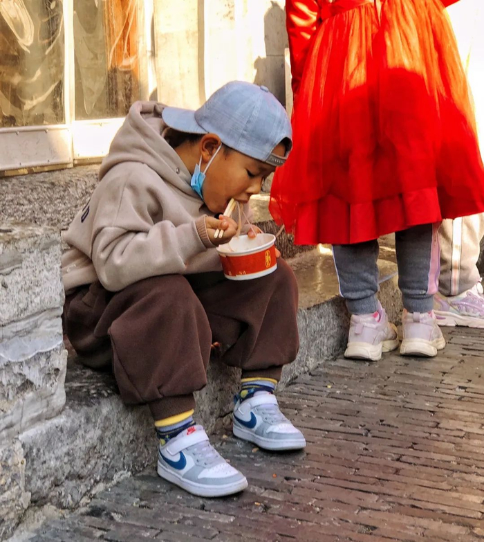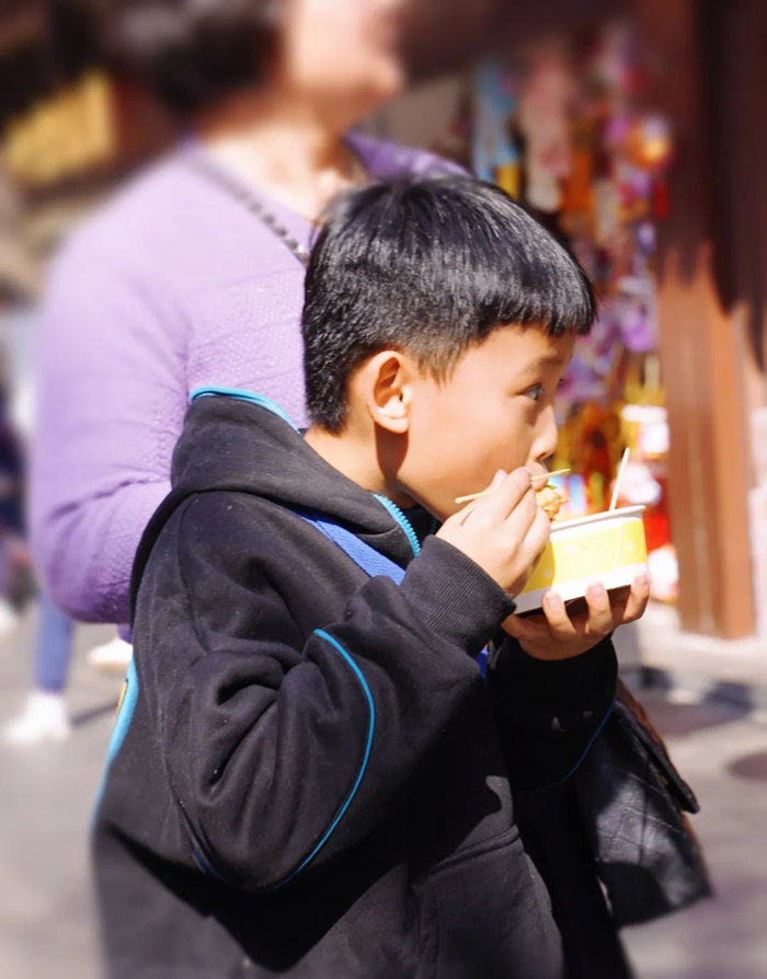 △老门东“南京味道小吃街”上在吃黄勤记凉粉的孩子“小吃本身就千变万化,每个地方也都有自己传承的品类,不管一种小吃来自全国哪里,只要能扎根南京、保证品质,我们都欢迎他们加入‘秦淮小吃’的大家庭!”持有南京人特有的包容性格的陆海波说,“但是不能几个月换一个品种,什么好卖卖什么,那肯定没法保证品质。”