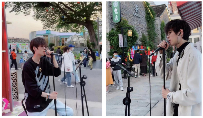 驻唱歌手在秦淮水阁边倾情弹唱,