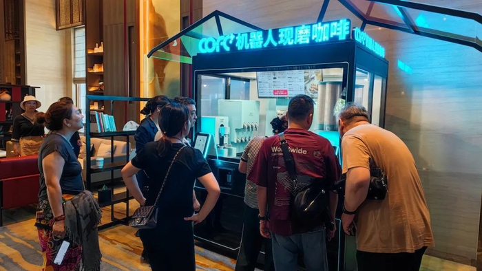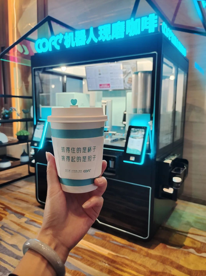 千鹤湖酒店的这家“高科技”的咖啡馆,机器人操作炫酷,让顾客一秒进入赛博朋克世界。“炫酷”、“满满的高科技”、“咖啡师要失业了”、“做的咖啡不比真人差”,被众多网友关注和打卡。