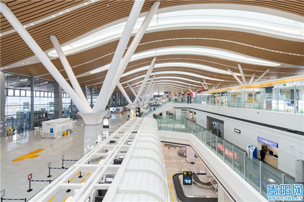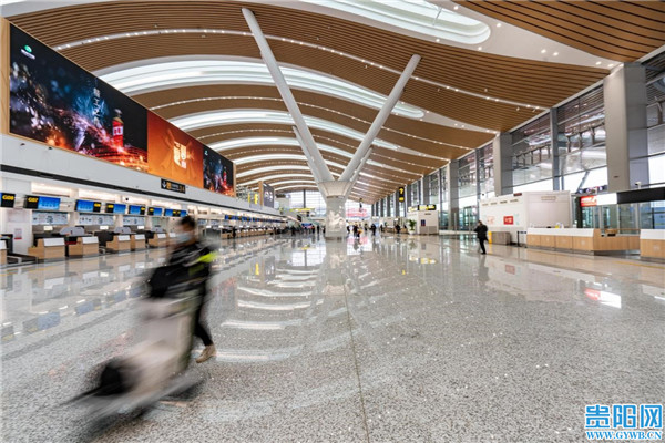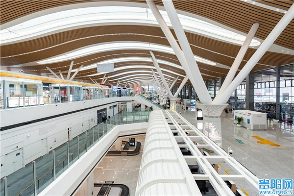 贵阳机场T3航站楼一共5层,三至四层为国内、国际、地区出发区域,一层为到达区域,负一层为停车场和机场客车站区域。