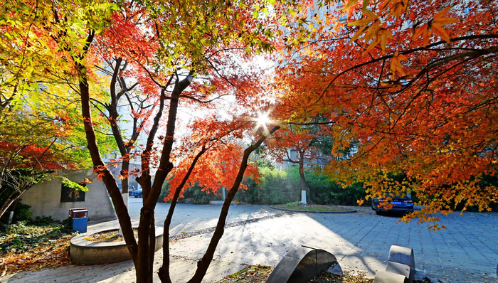 冬日暖阳照枫林,江苏无锡锡山区锡北镇。