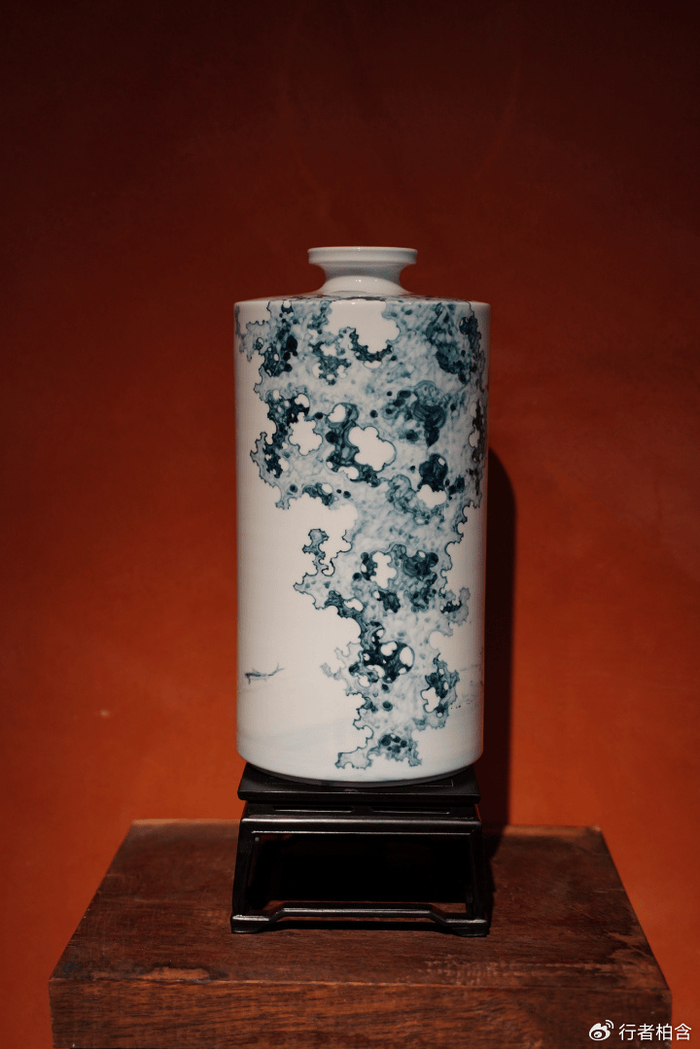 在绘画上他不惜成本,用1000元一瓶的青花黑料、与多家窑口青釉融合碰撞,找寻自己的青花面貌。终于功夫不负有心人,他找到了自己的青花色相——草青色。草青色代表如下图青花苏州印象、青花观音瓶。