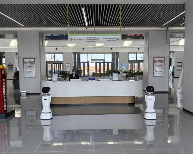 大厅内还配备了两台智能导引机器人,负责智能引导、智慧解答、自动巡视等任务,每天按照预设路线准时巡航,为市民提供贴心帮助。