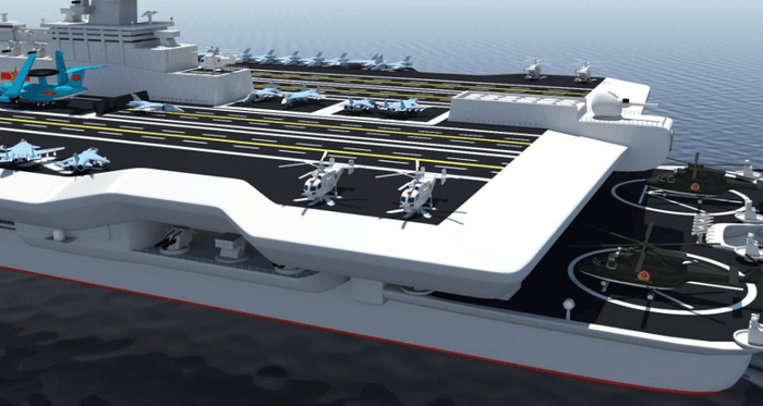 中国打造一艘排水量为18万吨的双体航母这一计划只能算是中规中矩,从中国将建第二艘航母的消息传来,野心不应该满足于如此吨级排水量,从试图撼动美国航母霸主地位来看,中国军方将打造50-60万吨级三体二层巨型航母,战力将甩美军10万吨福特级航母几条街。