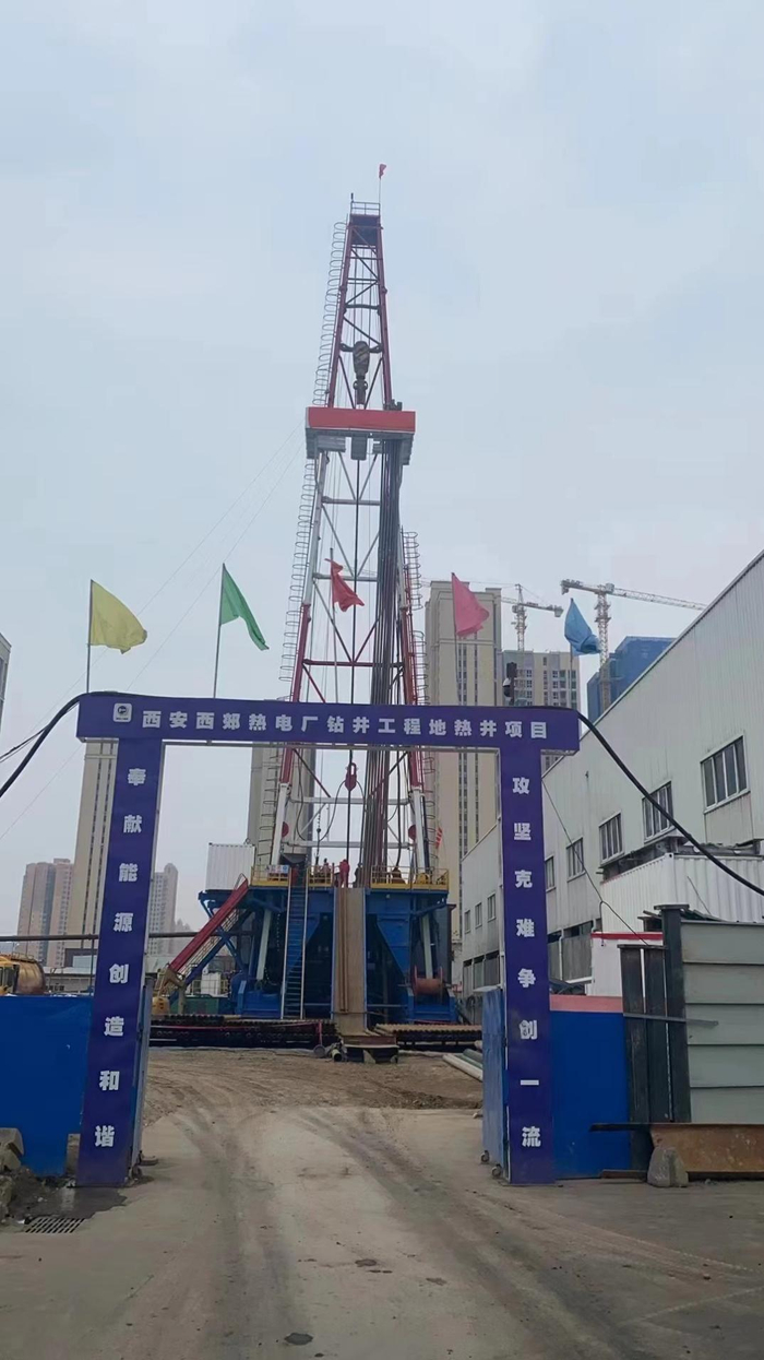 热电公司‘地热+’项目现场为优化供热能源结构,推动城市用热更节能、更低碳、更环保,西安城投集团充分挖掘城市地热、光伏、沼气、生物质等多方面能源潜力,通过探索多元化供热方式,促进供热企业转型升级。“我们与中石化绿源公司合作实施了‘地热+’项目,建成后每年能节约天然气3000m³,减排二氧化碳50000吨,减排氮氧化物约23吨。”热电公司企管计划部副主任曹昊介绍。该项目是热电公司打造“地热+清洁能源”供热模式的一次创新实践,预计10月底前投产8口地热井,可在2024-2025年采暖季实现产能32万吉焦,降低供热成本1500万元。