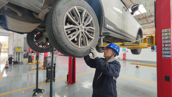 在公交集团建元路保修分公司厂区内,车主褚先生正在将刚保养完的爱车开至充电桩处进行充电。“自从家门口开了这个养车旗舰店,平时洗车充电更方便了!我还办了保养套餐,以后再也不用跑老远去保养车了!”褚先生说。