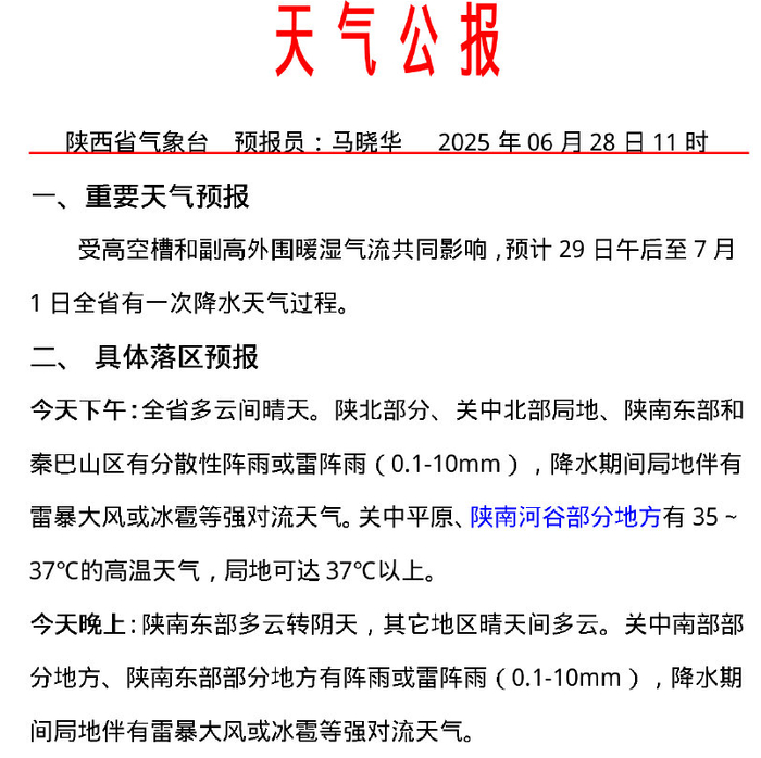 陕西省气象台6月28日11时