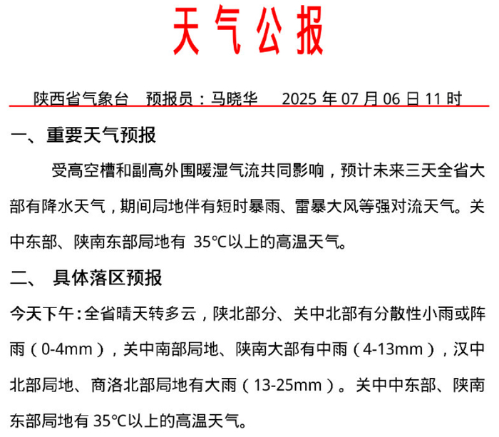 西安市气象台7月6日12时05分