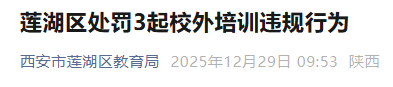 为持续深化“双减”工作成效,严厉打击各类隐形变异学科类培训行为,大力营造莲湖教育良好生态。现将莲湖区违法违规校外培训行为查处情况通报如下: