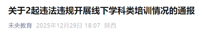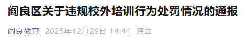 为巩固“双减”成效,深入开展校外培训治理,加大联合执法力度,严查严处各类隐形变异违法违规学科类校外培训行为。现将阎良区违法违规校外培训行为处罚情况通报如下:
