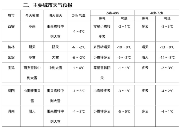 31日:城区及平原地区小雨或雨夹雪转小到中雪,南部山区大雪,长安、蓝田山区局地暴雪,-1℃~3℃;