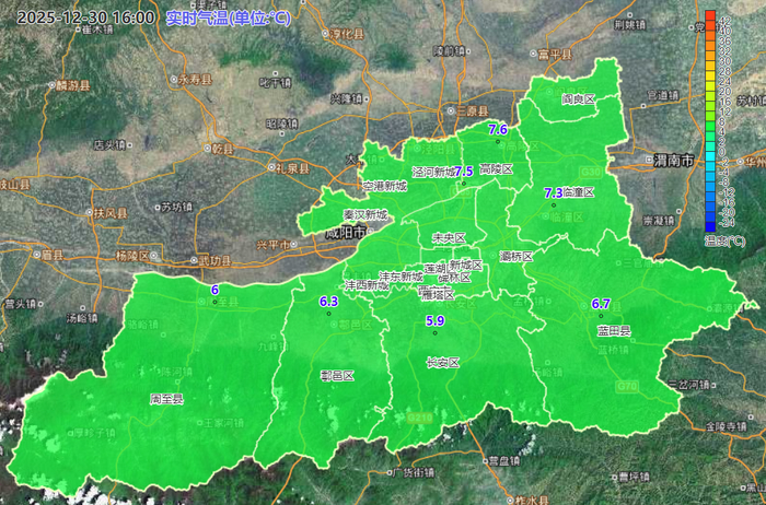 12月30日16时西安市气温实况色斑图西安市气象台12月30日16时