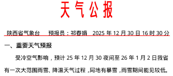 陕西省气象台12月30日16时30分