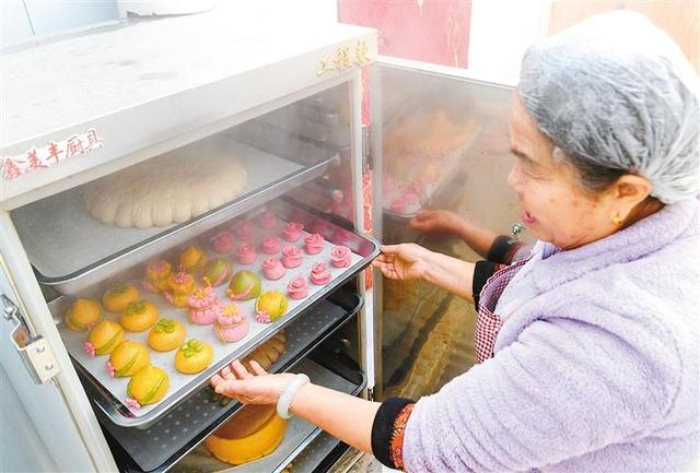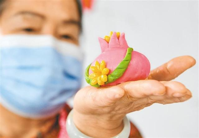 用果蔬汁和面制作的花馍蒸熟后色彩更加鲜艳