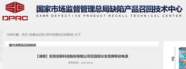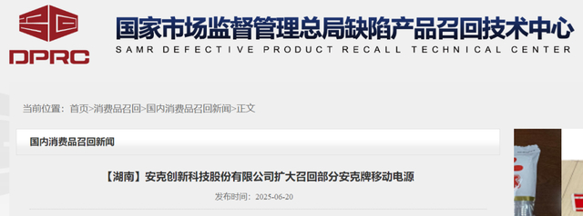 近日,安克创新科技股份有限公司发布产品召回公告,宣布对部分型号基础款移动电源实施主动召回。公告显示,此次召回涉及型号为A1642、A1647、A1652、A1680、A1681、A1689、A1257的部分批次产品。