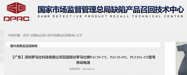 据深圳市市场监督管理局网站消息,日前,深圳罗马仕科技有限公司按照《消费品召回管理暂行规定》的要求,向深圳市市场监督管理局报告了召回计划,召回的三款产品共计491745台。自6月16日起,召回2023年6月5日至2024年7月31日期间制造的部分罗马仕ROMOSS牌移动电源。