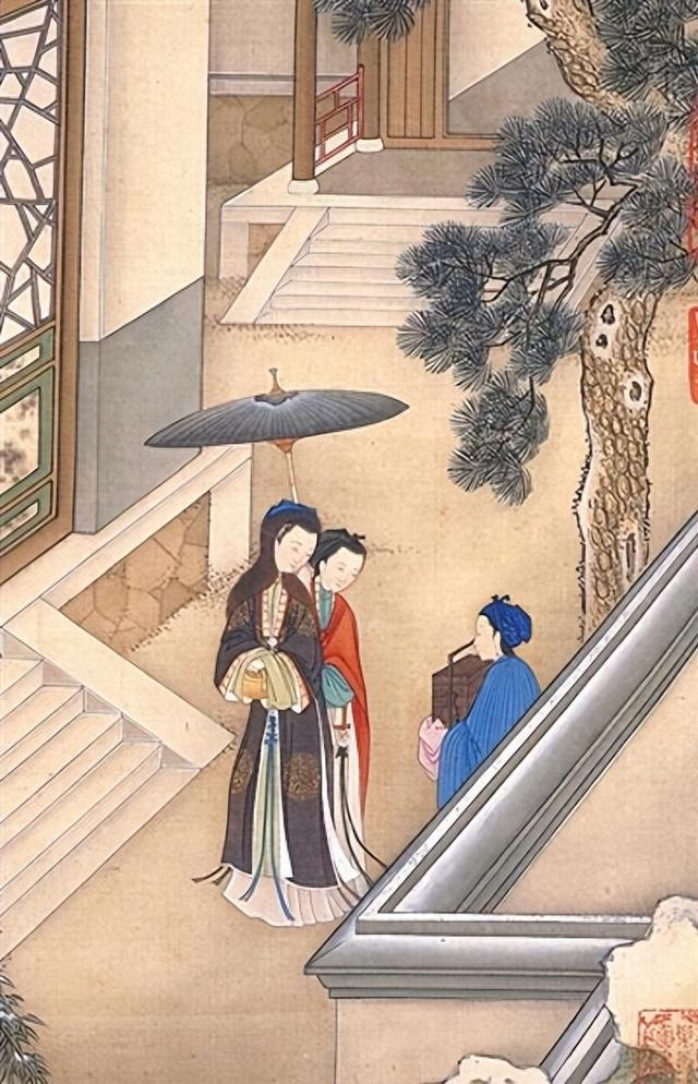 古人御寒智慧往往体现于器物设计巧思中。清代喻兰的《仕女清娱图册》,以闺阁闲趣为主题,定格了古代女子的雅致日常。册中一幅自弈图尤为动人:案前女子凝神自弈,脚边熏笼暖意氤氲,小童蜷身酣睡。熏笼兼具供暖与熏香之用,暖意弥散开来,温柔地包裹着室内一方天地,既护着弈者的澄明心境,也守着稚子的酣甜梦境。再看清代陈枚《月曼清游图册》之“踏雪寻诗”(局部见图)中,贵妇罗袖轻拢,袖中暗揣一只玲珑小巧的袖炉。这“袖中藏暖”的细节,既贴合人物的身份与气质,也将暖意化作贴身的慰藉,更为精神世界增添了几分雅致。手中的融融暖意与胸中的郁郁诗情,在冷与暖、物质与精神、现实与理想的交织中,漾开别样韵致。