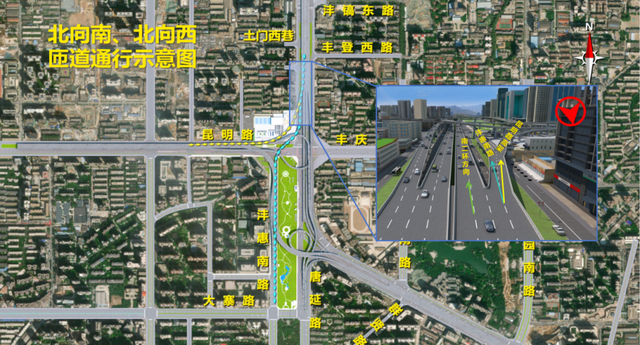 2.沣惠南路(昆明路至大寨路段)立交新建北向南(NS)匝道下桥口至大寨路段由原双向通行调整为北向南单向通行;前往大寨路方向车辆,下桥后需提前进入右转车道通行。