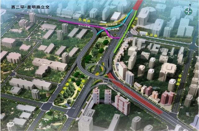 2025年12月29日6时起,西南二环立交区域南二环、西二环主线桥,新建北向西(NW)、北向南(NS)、南向北(SN)、西向北(WN)四条转换匝道,西二环团结中路口南侧上、下行匝道开放通行,实现南二环、西二环与昆明路高架、唐延路、沣惠南路、大庆路等道路快速交通转换功能(详见附图1)。
