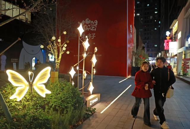12月28日,华灯初上,西安高新大都荟街区年味渐浓、热闹非凡。艺术展厅内趣味十足,观众踩着地面数字玩跳格子,驻足品读墙面趣味文字,沉浸式感受文艺氛围;街区步道旁,发光蝴蝶与蘑菇灯饰次第亮起,暖光交织成浪漫夜景;萌宠互动区里格外治愈,小鹿和小朋友互动,憨态可掬的羊驼引来欢声笑语不断;卡通玩偶和积木人偶成为游人打卡点,大家纷纷举着手机定格美好瞬间,整条街区的夜晚充满烟火暖意与浪漫气息。