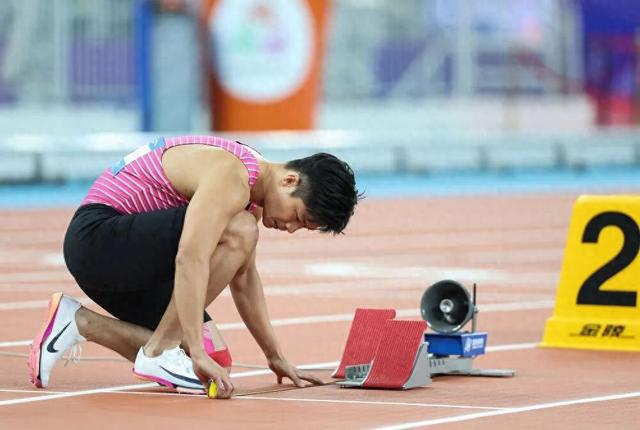 11月20日,广东队选手苏炳添在比赛前准备。新华社记者 黄伟 摄下蹲