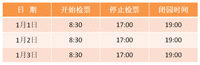 元旦假期(1月1日—1月3日),每天8:30—18:00(17:00停止入园),欢迎大家前来参观。
