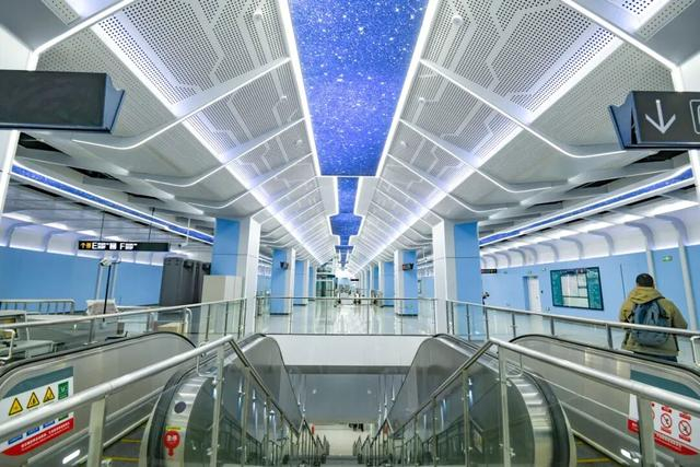 西安地铁15号线航天城站天花板模拟星空效果,科技感十足。(资料图)早高峰,赵骏峰驾车驶过崭新的张家堡十字。没有绕行,没有等待,“一脚油门就通过了”。