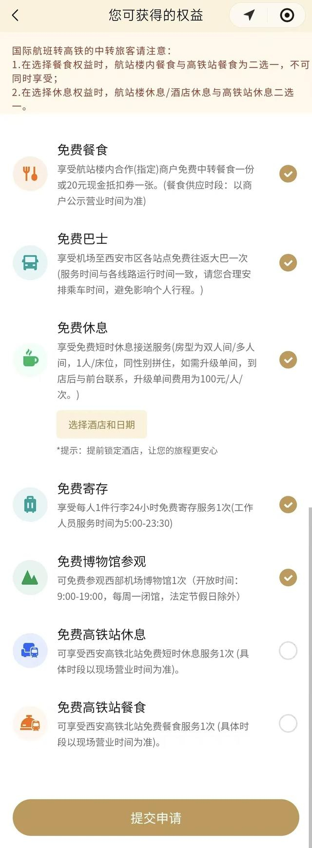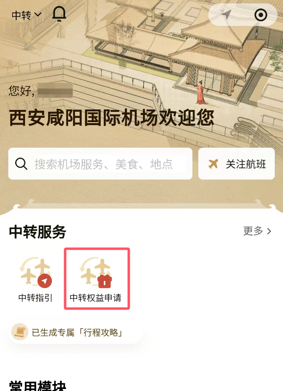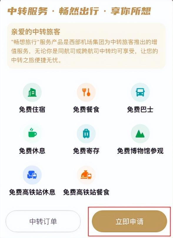 如果您已在第三方平台自动申请中转服务,您可登录“西安机场旅客服务”小程序,通过“中转订单”功能,查看您的中转权益。