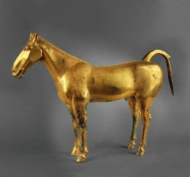 汉代鎏金铜马出土于茂陵东侧陪葬坑,为汉武帝时期遗物,以西域汗血宝马为原型,通体铜铸鎏金,既展现了西汉冶金工艺,也印证了汉与西域的良马交流,是茂陵博物馆“镇馆之宝”。