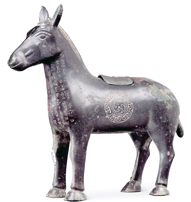 西周盠驹尊1955年出土于陕西眉县李村,高32.4厘米,是已知最早的驹形青铜器。器身铭文记载周王主持的“执驹礼”,既体现西周对马政的重视,也印证了当时的礼制文明。
