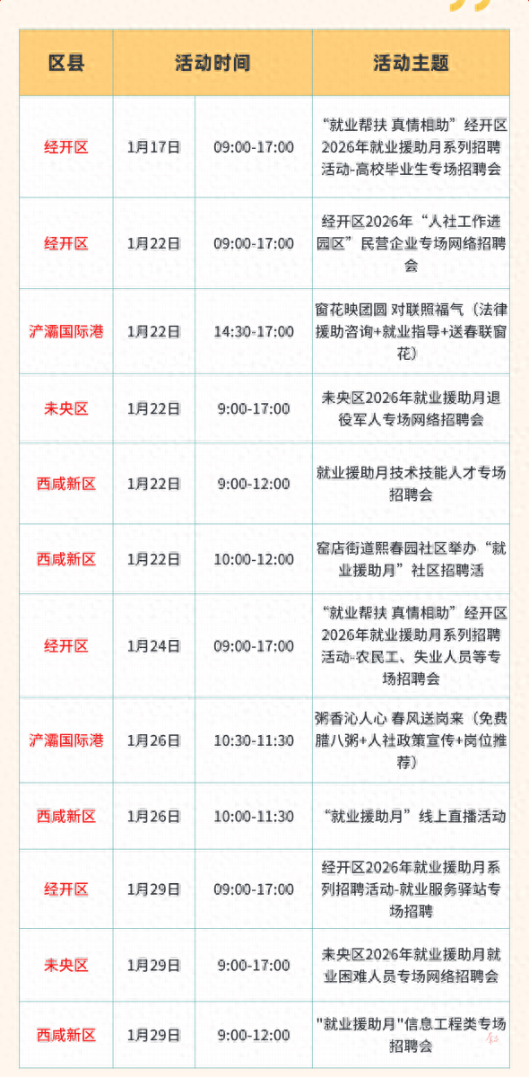 1月20日,记者从西安市人社局获悉:为抢抓春季用工求职“双高峰”,西安市人社局日前正式启动2026年就业援助系列活动。