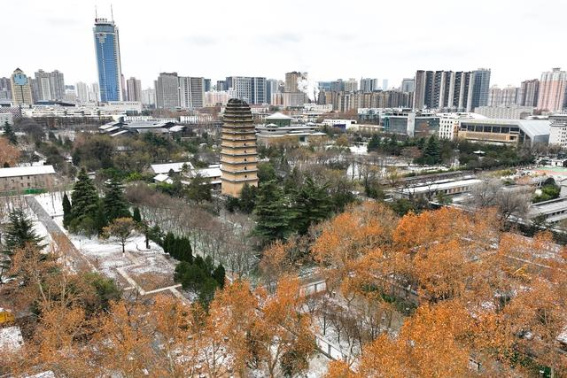 1月20 日,雪后的小雁塔宛如一幅静谧的水墨画,千年古塔在雪景点缀下更显庄重沉稳,美如画卷。