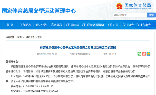 公示米兰冬奥会参赛运动员名单
