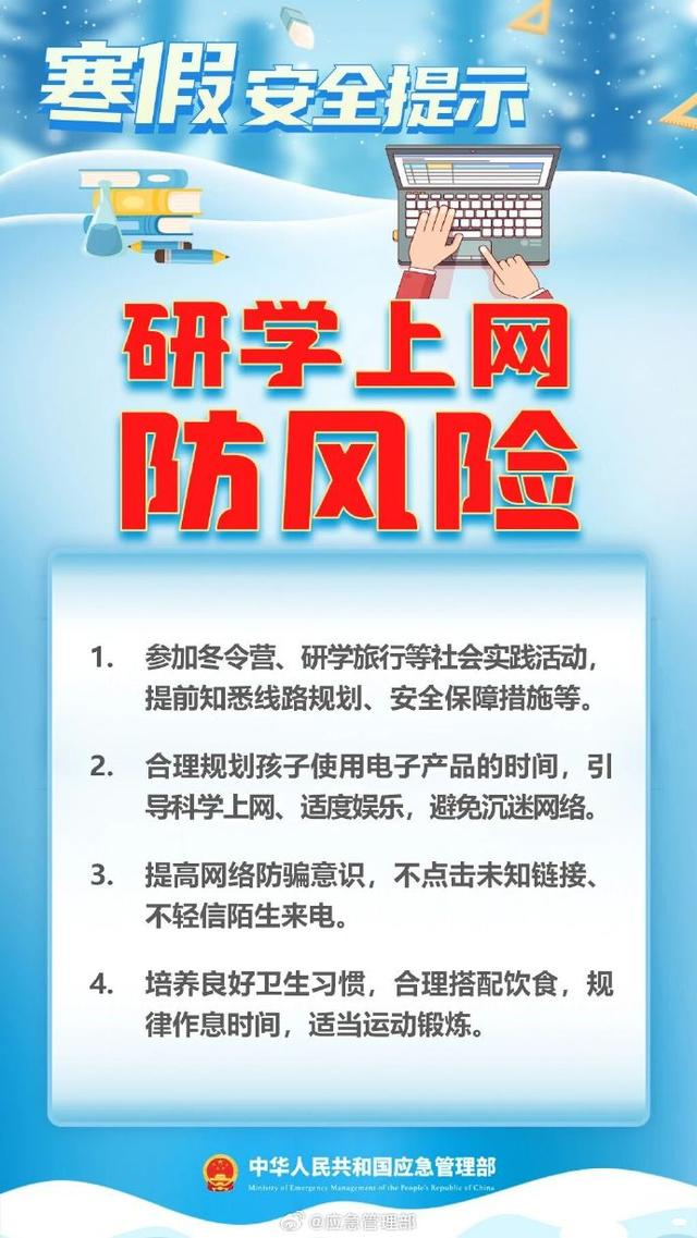 2026年寒假将至,孩子们将陆续开启寒假模式。享受快乐假期,也要紧绷安全弦!广大师生家长,这份寒假安全提示一定要了解!
