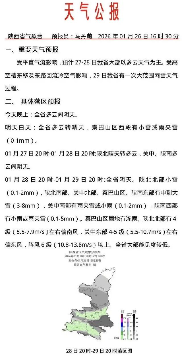 受平直气流影响,预计27-28日我省大部以多云天气为主。受高空槽东移及东路回流冷空气影响,29日我省有一次大范围雨雪天气过程。