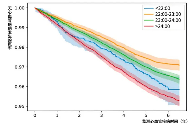 研究截图研究显示,晚上10~11点入睡,患心血管疾病的风险最低,太早、太迟睡觉都会增加患病风险。并且,睡眠不规律与心血管疾病风险增加有关。