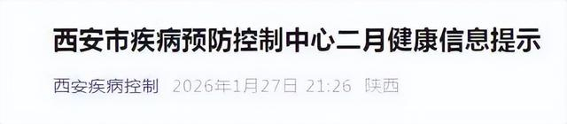二月正值立春、雨水节气,气温逐步回升但波动显著,为呼吸道传染病高发时段。春节即将来临,人口流动量增大,疾病传播风险进一步升高。西安市疾病预防控制中心特此提示广大市民:本月需重点防范流行性感冒等呼吸道传染病、肾综合征出血热及食源性疾病,同时加强节日期间饮食安全管理、出行健康防护和儿童青少年假期安全保障,确保市民健康平安度过新春佳节。