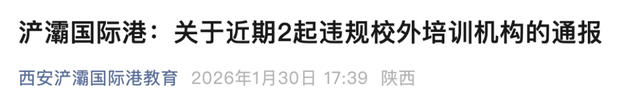 西安浐灞国际港深入贯彻落实国家、省、市“双减”政策要求,坚决查处打击违规违法校外培训行为,不断推进校外培训机构规范治理。现将近期违法违规校外培训情况公布如下:
