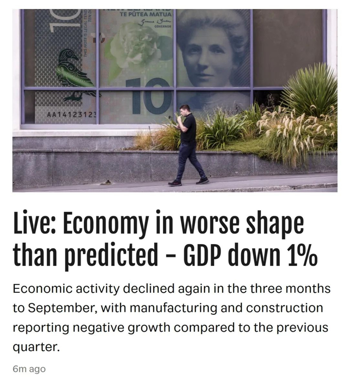 Stuff标题:“经济比之前的预期更糟,GDP下跌1%”——