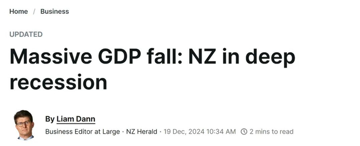 RNZ标题:“GDP大跌,新西兰经济重回衰退”——