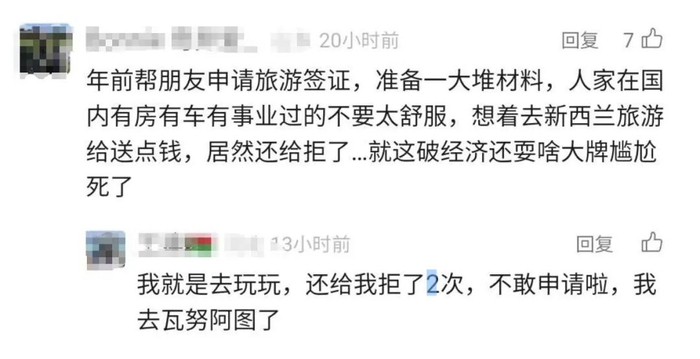 还有华人认为,新西兰签证部门现在还经常“耍大牌”,想来送钱都会被拒,“尴尬死了”……