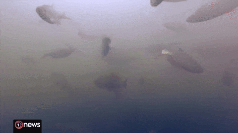 从水下拍摄画面可以看到,这个奥克兰最原始、物种多样性最丰富的淡水湖里,密密麻麻地游着这两种鱼——红眼鱼(rudd)和丁鳜(Tench).