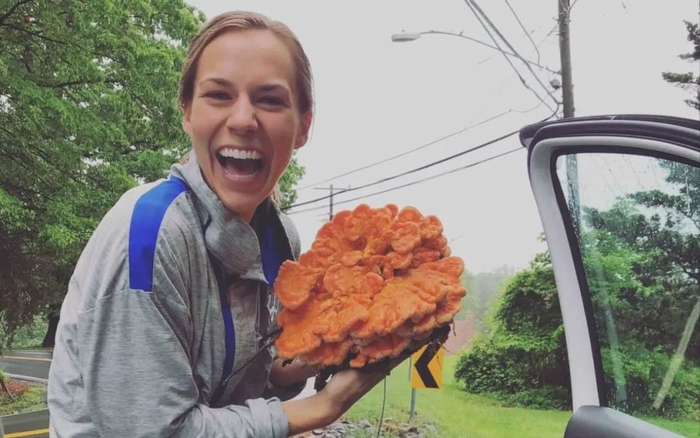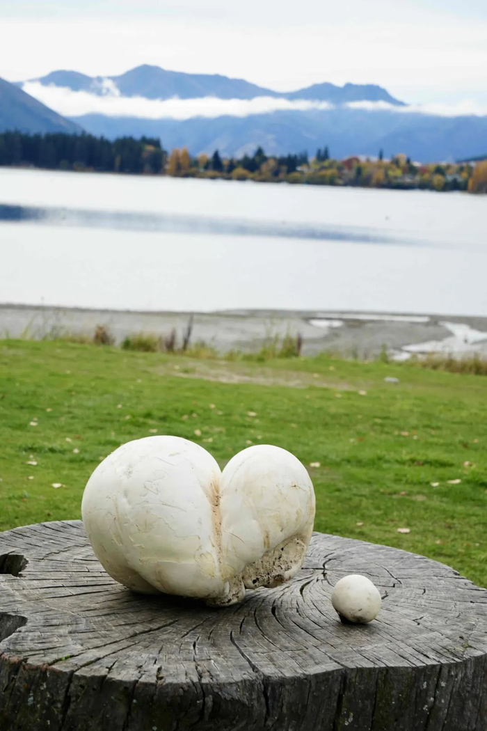 这朵巨大蘑菇是她在新西兰南岛瓦纳卡地区采到的。