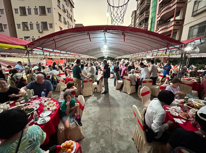 在村里广场上,全村设宴欢迎徐氏后人,洋面孔引来当地人好奇的目光。