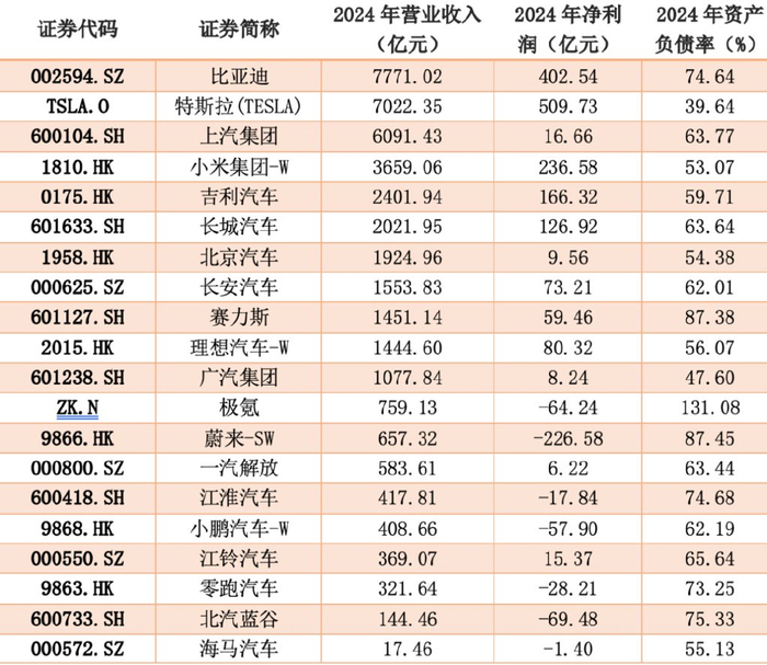 价格战加剧或令资本市场投资者更趋悲观。Wind数据显示,2024年A股上市乘用车车企的资产负债率普遍超过60%