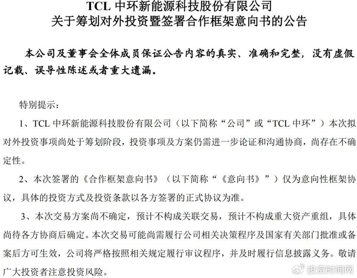 需留意的是,本次交易各方签署的《合作框架意向书》仅为意向性框架协议,具体的投资方式及投资条款需以各方签署的正式协议为准。本次交易尚处于筹划阶段,交易方案仍需进一步论证和沟通协商,最终交易能否顺利实施,以及实施的具体进度,均存在不确定性。